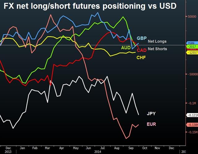 A currency by currency analysis of the emerging flows in FX futures in USD vs the 6 major currencies. Full charts & analysis.
