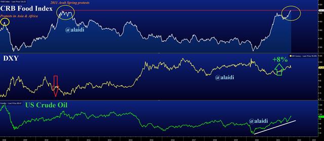 WHAT IF if US dollar makes the transition from range-bound to outright decline due to catch-up tightening from the rest of the world and deficit obstacles to more Fed hikes. Could the food crisis be exacerbated by a weak USD?