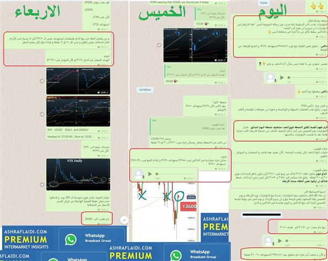 Here is a recap of what and how we approached shorting the DOW, SPX and DAX over the last 3 days. We started abour 45 mins before Wednesday's FOMC announcement alongside the SPX for our WhatsaApp Broadcast Group. Please see the details of the last 3 days. تفضلوا بملخص محتوى صفقاتنا لبيع مؤشر الداو و الداكس من يوم الاربعاء الى اليوم واهم شيء التوجيهات التي ترافقها رسائل صوتية مفصلة صورة الواتساب العربي موجودة تحت صورة الانجليزي