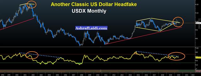 The rapid escalation of social discord in the United States highlights another reason that debt this decade will spiral out of control. The US dollar starts the month on a down note after May showed the biggest monthly USD decline since December. Aussie, silver and CAD lead, while JPY and CHF lag. The USDX chart highlights the latest headfake from the US dollar, possibly justifying Ashraf's repeated calls for shorting USD bounces, instead of joining the herd calls of buying USD rallies. CFTC positioning data showed few notable changes. Our Premium Insights' trades long EURUSD and XAGUSD hit their final targets for +200-pips each. There are currently 3 remaining open trades.