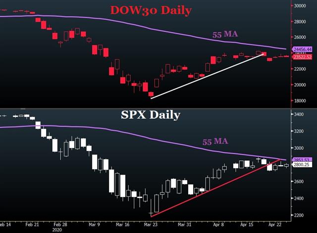 Risk risk appetite re-emerges on a combination of US Covid-19 infections hitting their slowest pace in three weeks, China reporting no deaths for the ninth day and the announcement from the US House of Representatives passing a $484 billion package to aid small businesses and hospitals. The news helped offset a selloff late Thursday following an FT report indicating that Gilead's Remdesivir drug hadn't been helpful in a Chinese study on the virus. Our Dow30 trade was stopped out, leaving 5 trades open.